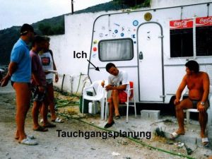 Dieses “Gentleman-Agrement” hielt für sage und schreibe 10 Jahre. Im Frühjahr des darauf folgenden Jahres rückte ich mit 10 Surfbrettern, einem Sportboot inkl. Wasserski, einer Segeljolle, ein Seemann-Sub Kompressor inklusiv 12 Tauchflaschen, diversem Tauchzubehör und einer Menge Enthusiasmus an.